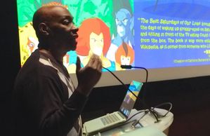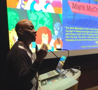Lecturing on the topic of "animation on a shoe-string budget" to the "History of Animation" class at SCAD.